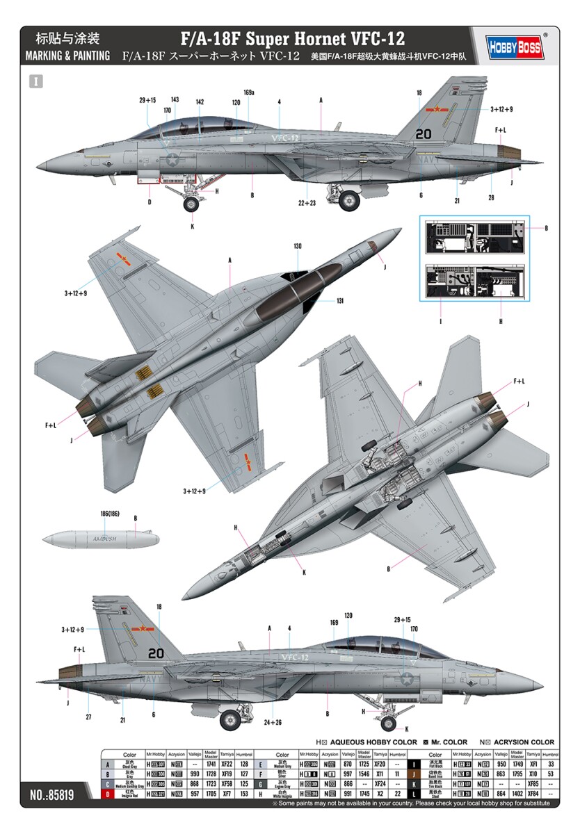 Збірна модель 1/48 Літак F/A-18F Super Hornet VFC-12 HobbyBoss 85819 з доставкою по всій Україні та магазинах Києва та Одеси.