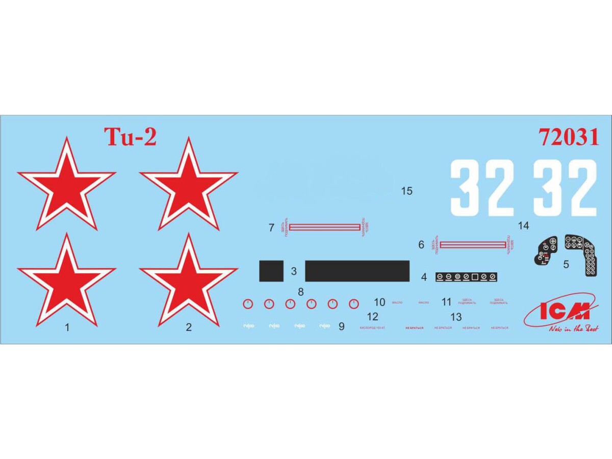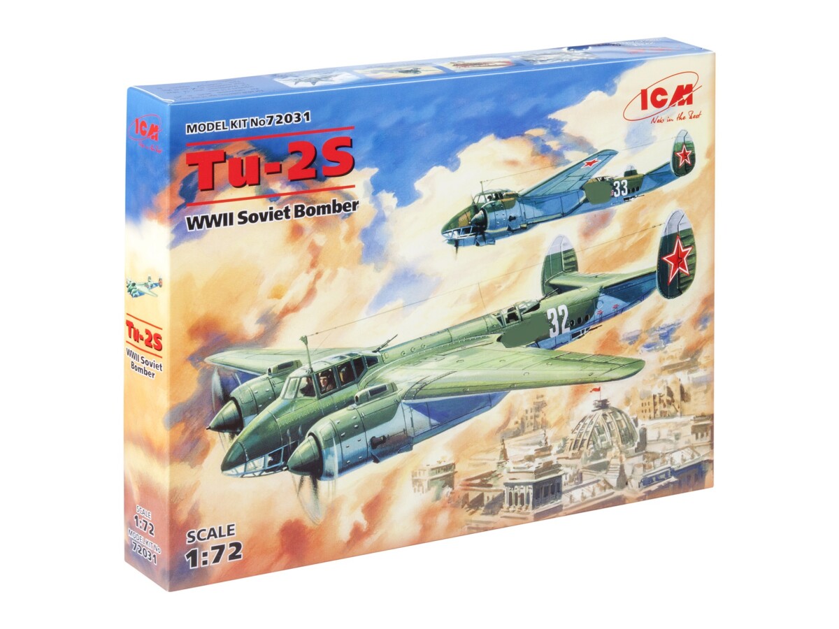 Збірна модель 1/72 Літак Ту-2С ICM 72031 з доставкою по всій Україні та магазинах Києва та Одеси. Клей та фарби в комплект не входять У комплекті: литники з деталями, прозорі деталі, декалі, схема для фарбування моделі, покрокова інструкція.