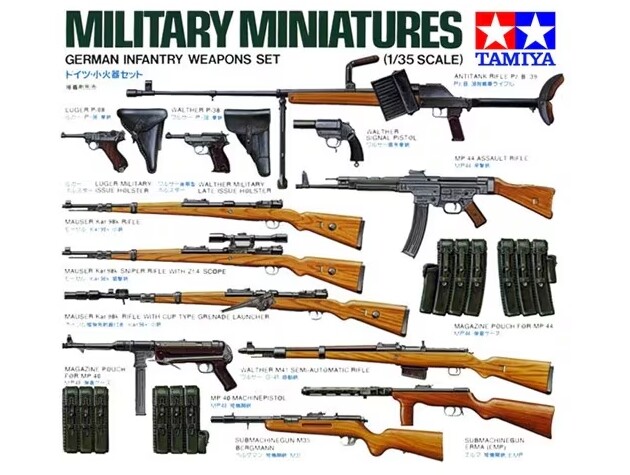 Збірна модель 1/35 Німецький піхотний комплект озброєння Tamiya 35111 з доставкою по всій Україні та магазинах Києва та Одеси. Клей та фарби в комплект не входять В комплекті: литники з деталями, схема для фарбування моделі, покрокова інструкція.