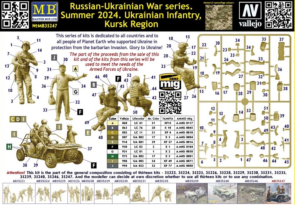 Збірна модель 1/35 Фігури "Серія російсько-української війни. Літо 2024. Українська піхота. Курська область" MasterBox 35247 з доставкою по всій Україні та магазинах Києва та Одеси.