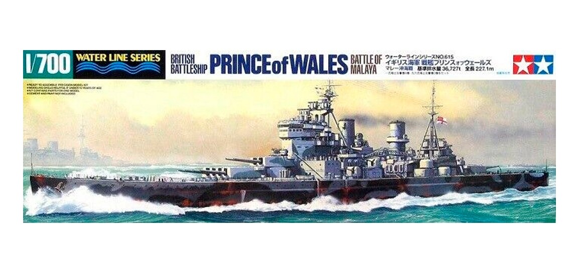 Збірна модель 1/700 Британський лінкор «Принц Уельський» — битва при Малаї Tamiya 31615 з доставкою по всій Україні та магазинах Києва та Одеси. Клей та фарби в комплект не входять В комплекті: литники з деталями, декалі, схема для фарбування моделі