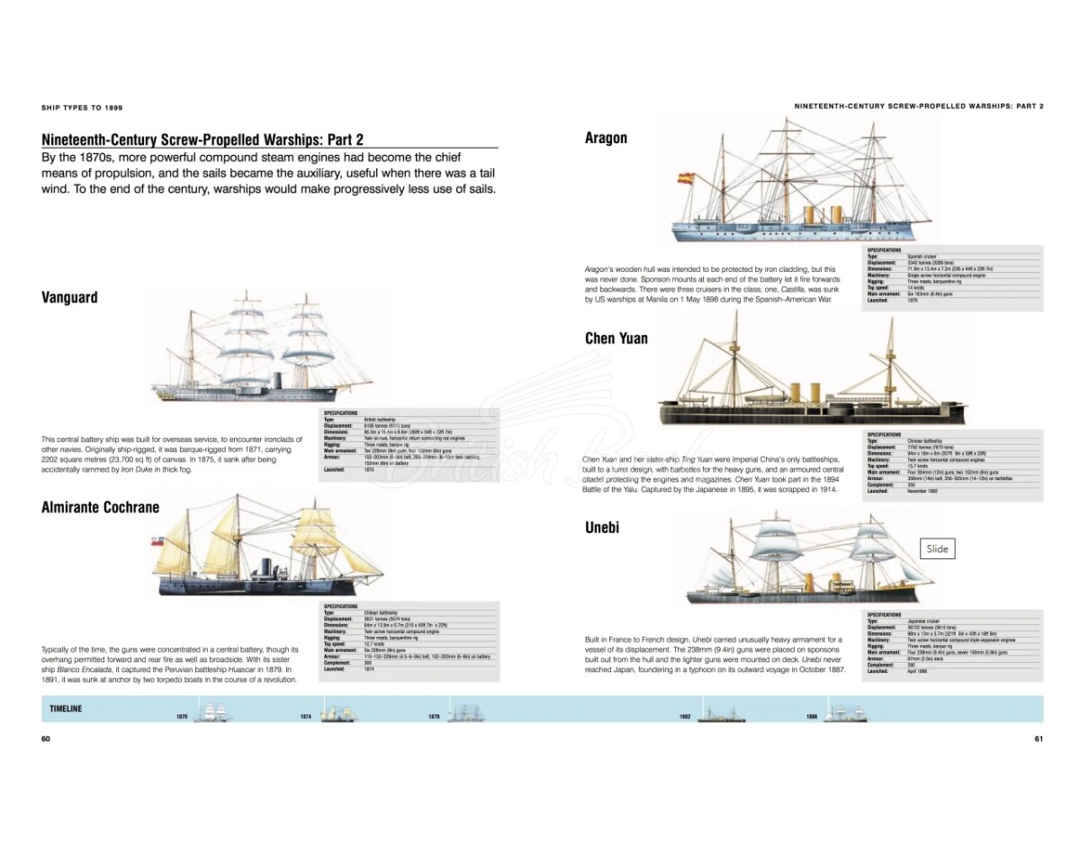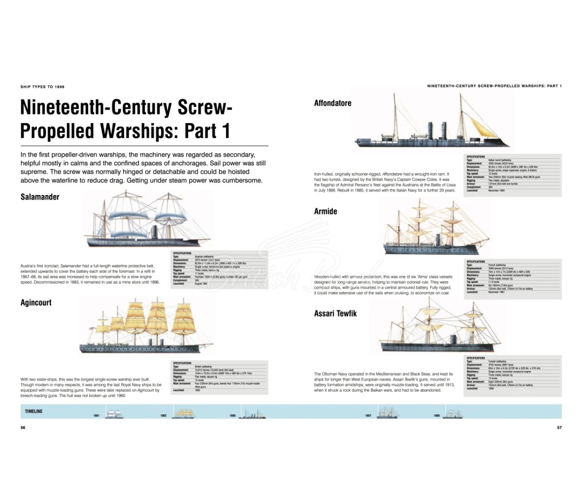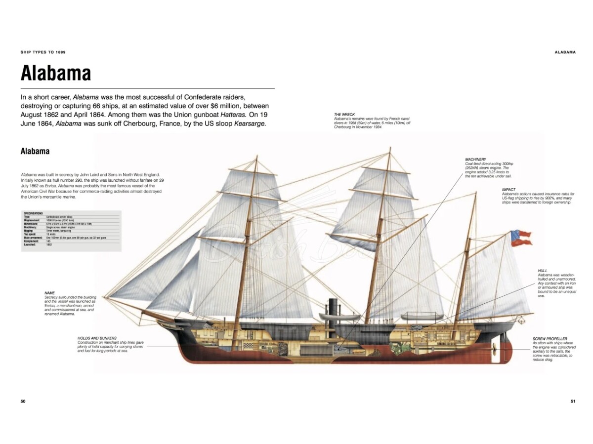Від світанку цивілізації людина відчувала особливе захоплення морем і протягом століть створила безліч кораблів та вітрильників для різноманітних цілей. Ships: Visual Encyclopedia пропонує захопливий наочний огляд понад 1200 найважливіших кораблів — від найдавніших часів до сьогодення. Від драккарів і галеонів XVI століття до авіаносців і ядерних підводних човнів XXI століття — Ships: Visual Encyclopedia охоплює всі мислимі типи суден, на яких людина виходила в море. Окрім бойових кораблів усіх епох, у книзі розглянуто судна, що досліджували земну кулю, здійснювали торгівлю, дарували великі пригоди, розкіш і розваги. Від найменших прибережних торгових суден до гігантських сучасних нафтових танкерів, від витончених кліперів XIX століття до сучасних пасажирських лайнерів — книга є вичерпним путівником усіма кораблями світу, як військовими, так і цивільними. Кожне судно подано з профільною ілюстрацією, стислими відомос