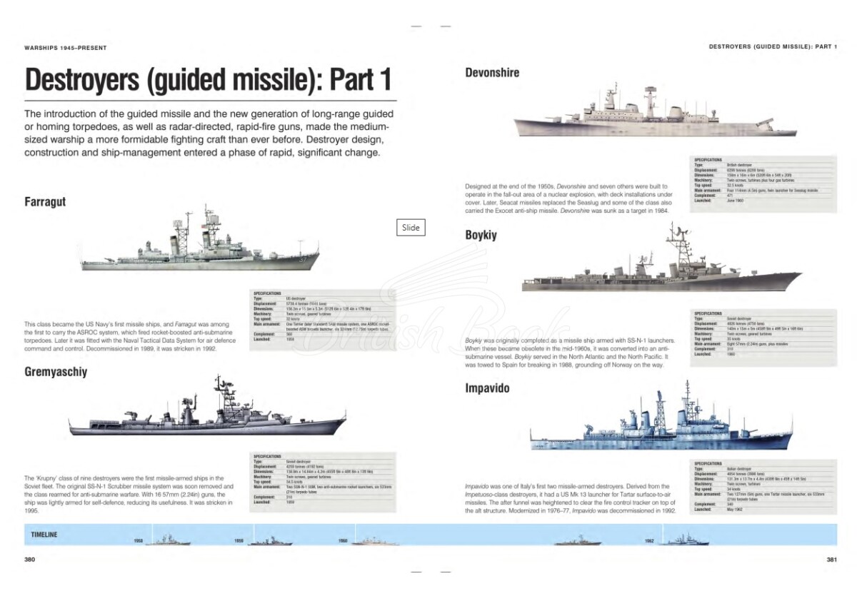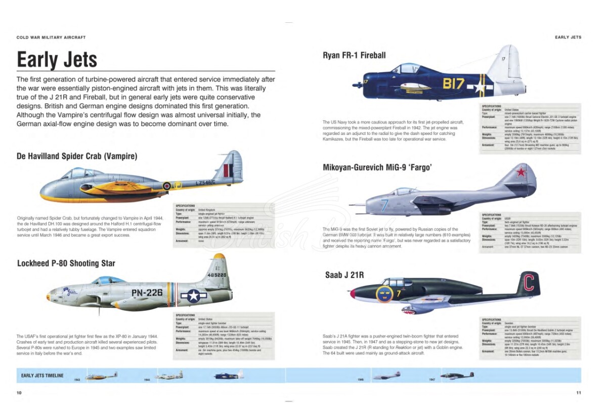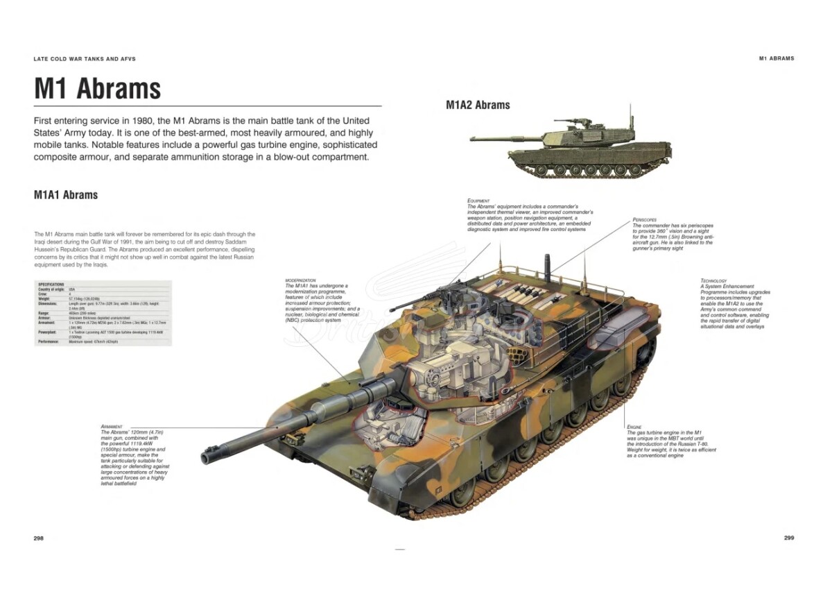Від ранніх реактивних літаків до F-22 Raptor, від танка Centurion A41 до Bradley M2, від авіаносців до атомних підводних човнів, "Military Aircraft, Tanks & Warships Visual Encyclopedia" - це захоплюючий путівник по літаках, танках і кораблях від початку холодної війни до наших днів. Впорядкована за типами, а потім у хронологічному порядку в межах кожного типу, кожна стаття або варіант ілюстрований чудовими кольоровими зображеннями, що детально показують характеристики і маркування, а також доповнені інформативним підписом і технічними характеристиками. Охоплюючи період від Корейської війни до В'єтнаму, від Індії та Пакистану до арабо-ізраїльського конфлікту, від Фолклендських островів до Афганістану та Іраку, книга включає основні бойові танки, танкові есмінці, бронетранспортери, десантні танки, винищувачі, перехоплювачі, бомбардувальники, транспортні літак