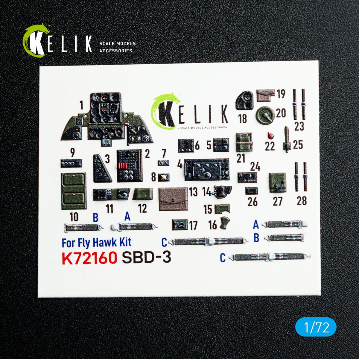 Douglas SBD-3 Dauntless 3D декаль інтер'єр для комплекту FlyHawk 1/72 KELIK K72160 з доставкою по всій Україні та магазинах Києва та Одеси.