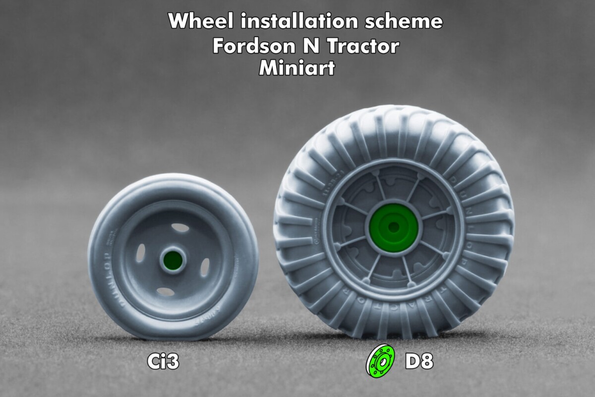 Колеса встановлюються на стандартні посадкові місця Ci3 та D8 наборів Miniart без додаткової доробки.