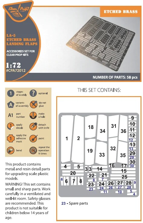 Набір фототравлення 1/72 Ла-5 (всі модифікації) з фототравленням посадкових закрилків Clear Prop CPA-72012 з доставкою по всій Україні та магазинах Києва та Одеси.