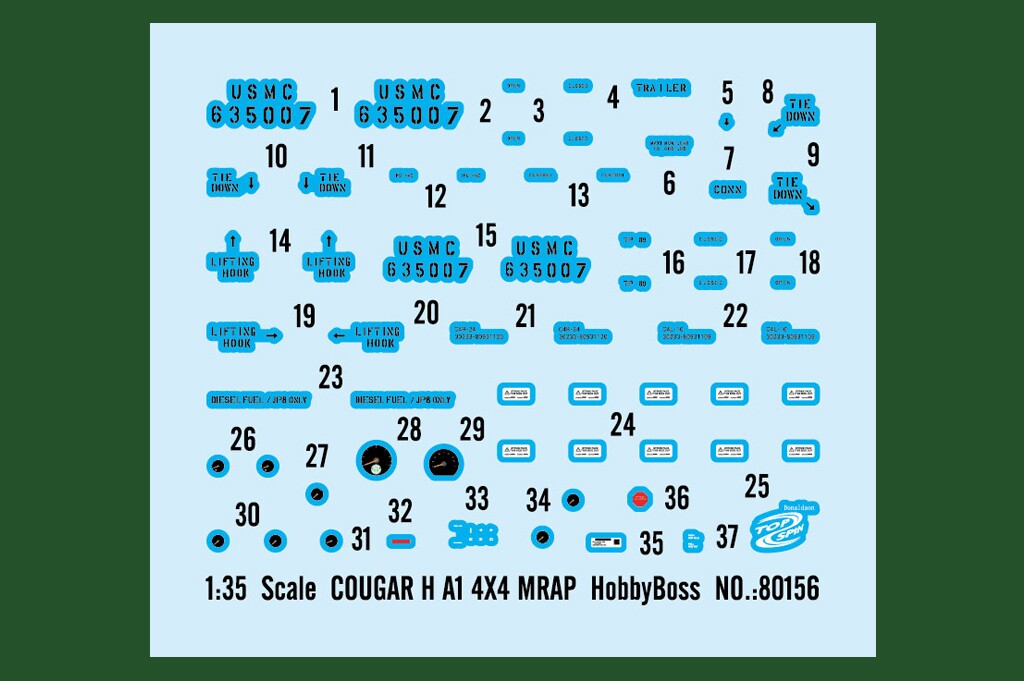 Збірна модель 1/35 Бронеавтомобіль Cougar H A1 4X4 MRAP HobbyBoss 80156 з доставкою по всій Україні та магазинах Києва та Одеси.