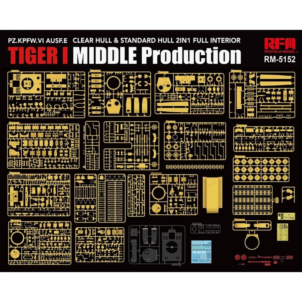 Збірна модель 1/35 Танк Тигр I Mid-Production з інтер'єром (прозорі деталі) 2-в-1 РФМ RM-5152 з доставкою по всій Україні та магазинах Києва та Одеси.