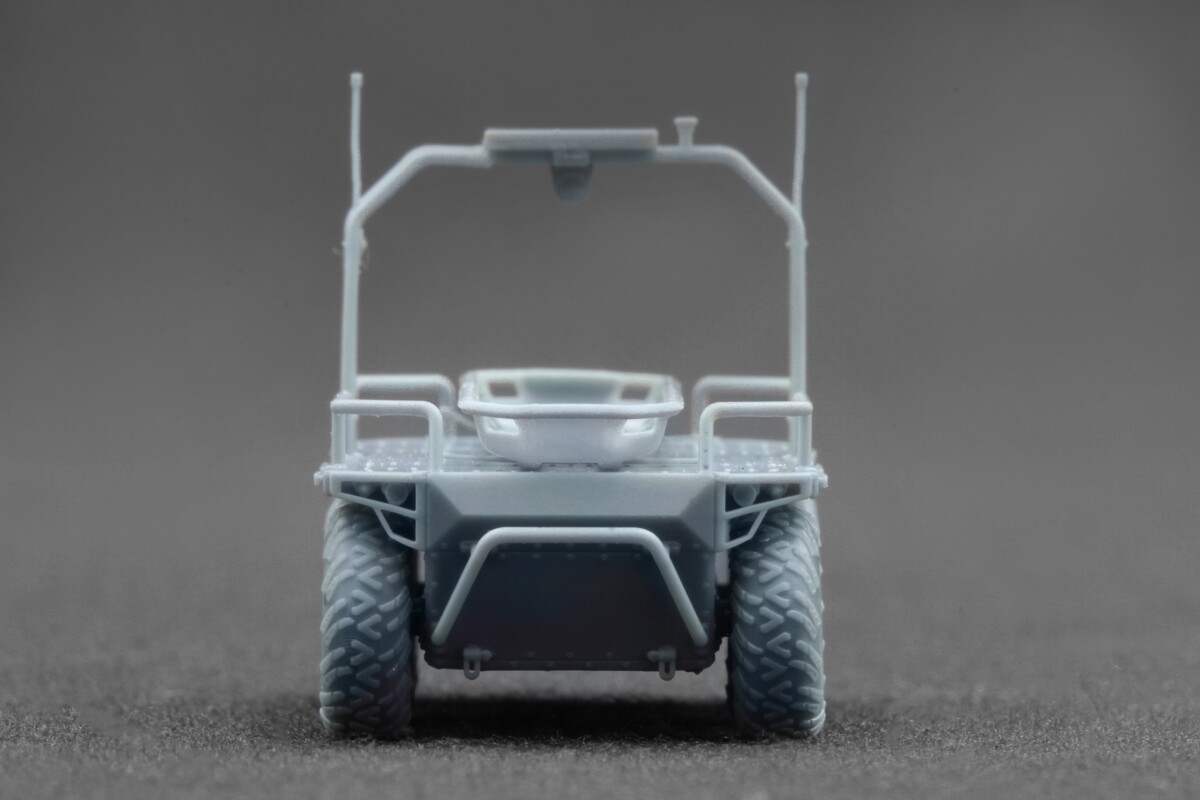 Ми представляємо детальну масштабну копію безпілотного наземного апарата Ratel H — сучасної роботизованої платформи, створеної для виконання багатофункціональних завдань підтримки на полі бою. Дана версія відтворює логістичну та транспортну конфігурацію сімейства Ratel, що використовується для перевезення вантажів, буксирування та евакуації поранених.