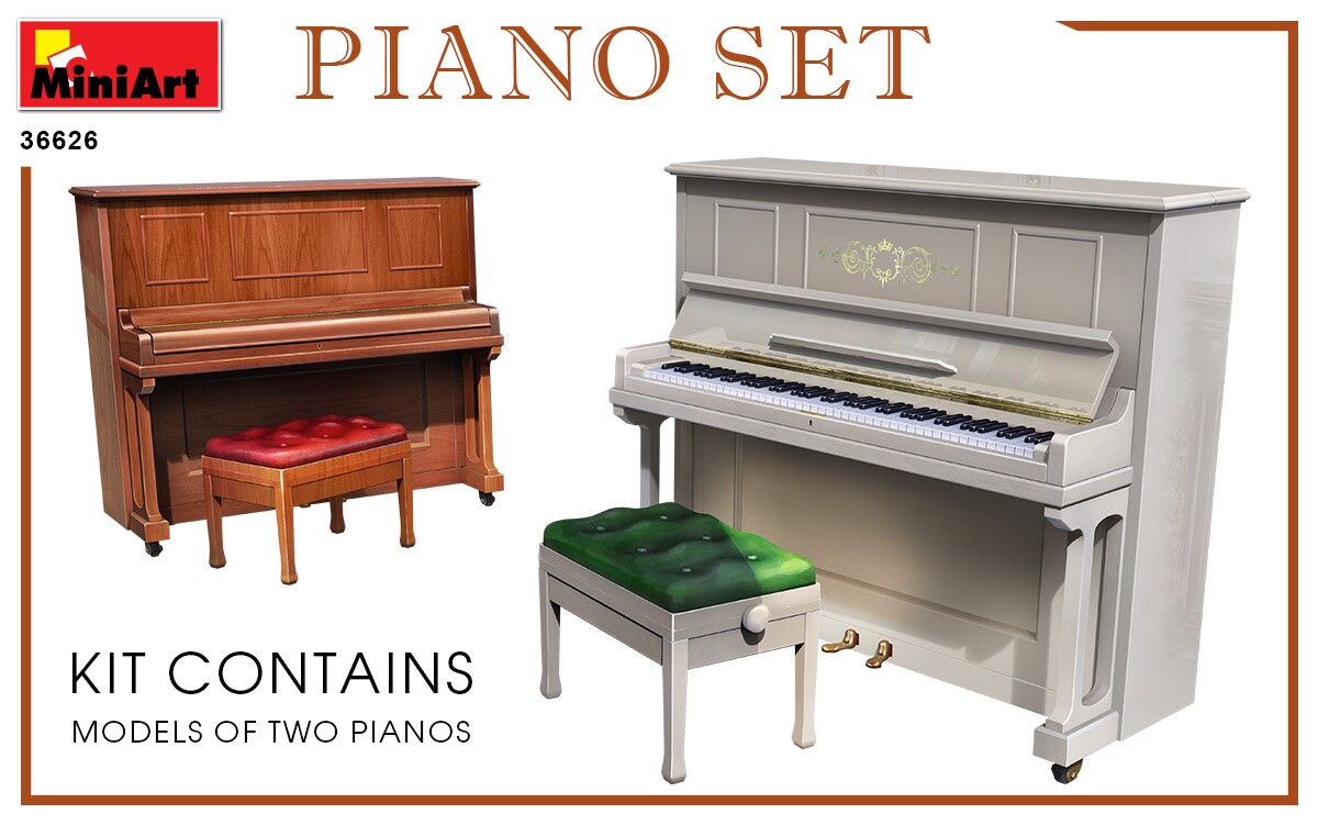 Сборная модель 1/35 Набор пианино Miniart 35626 с доставкой по всей Украине и в магазинах Киева и Одессы. Клей и краски в комплект не входят В комплекте: литники с деталями, схема для покраски модели, пошаговая инструкция.
