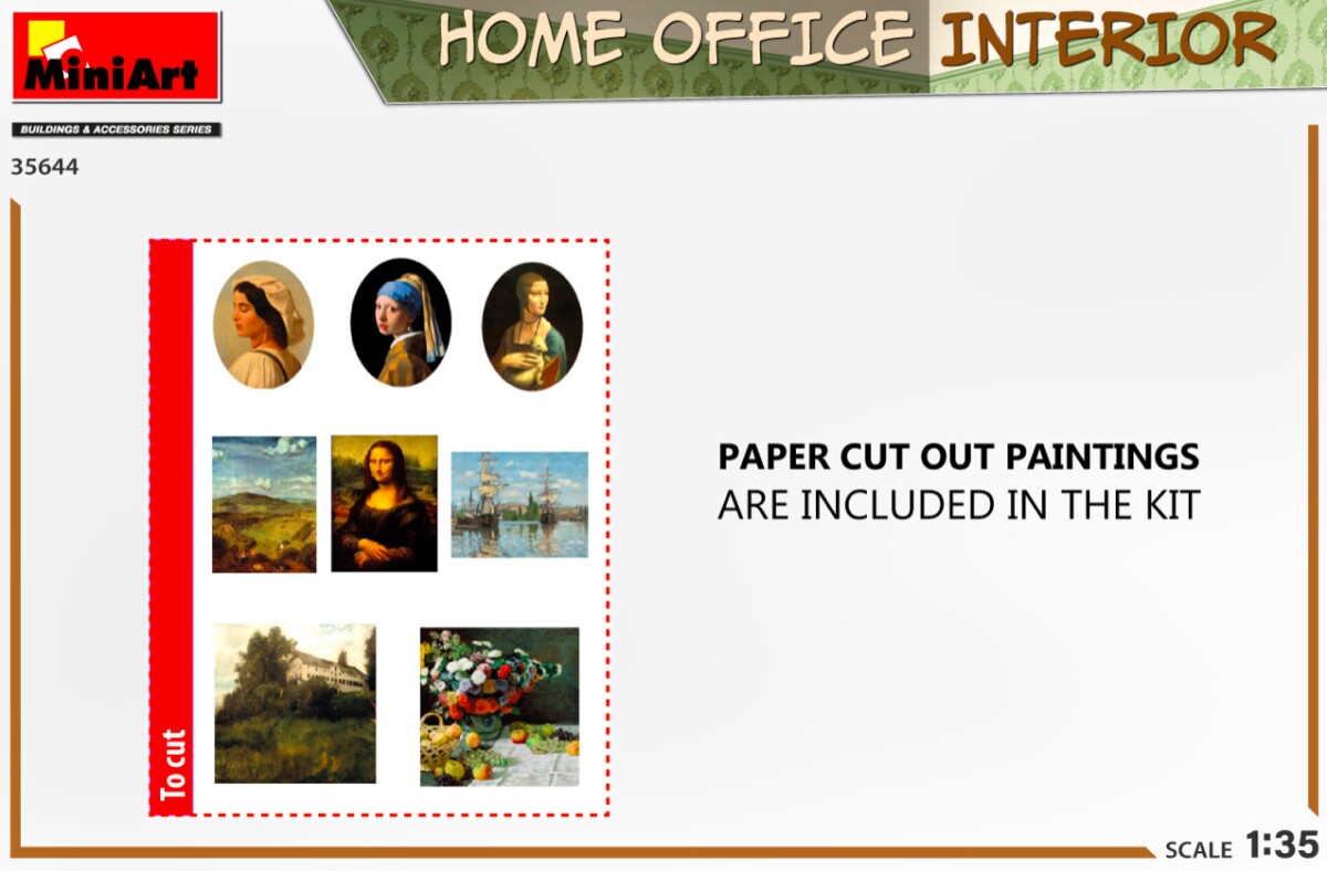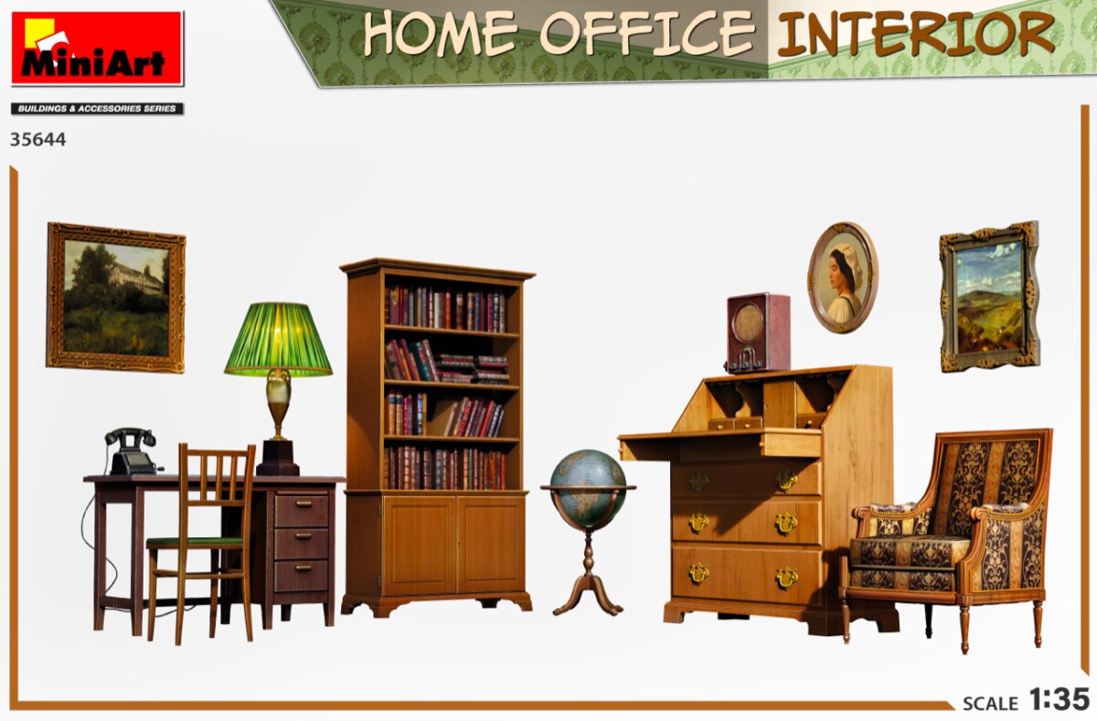 Сборная модель 1/35 Интерьер домашнего офиса Miniart 35644 с доставкой по всей Украине и в магазинах Киева и Одессы. Клей и краски в комплект не входят В комплекте: литники с деталями, схема для покраски модели, пошаговая инструкция.