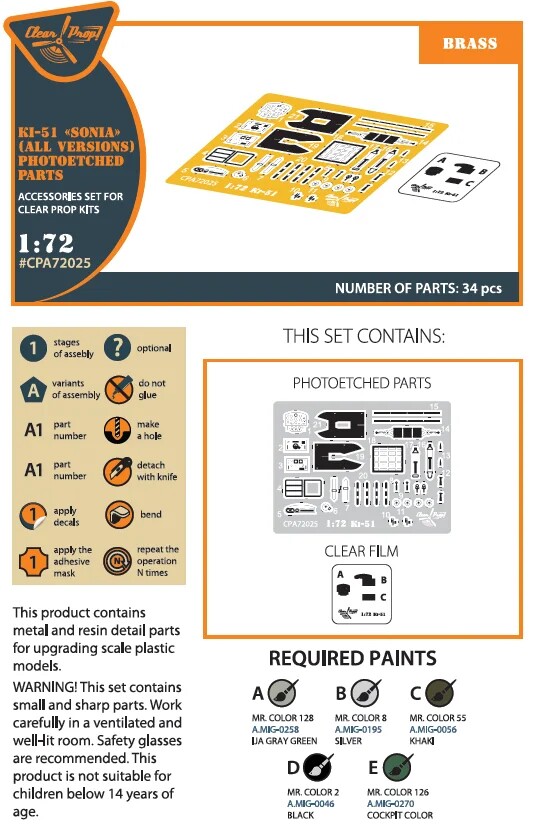 Набор фототравления 1/72 Ki-51 Sonia (все версии) Clear Prop CPA-72025 с доставкой по всей Украине и магазинам Киева и Одессы.