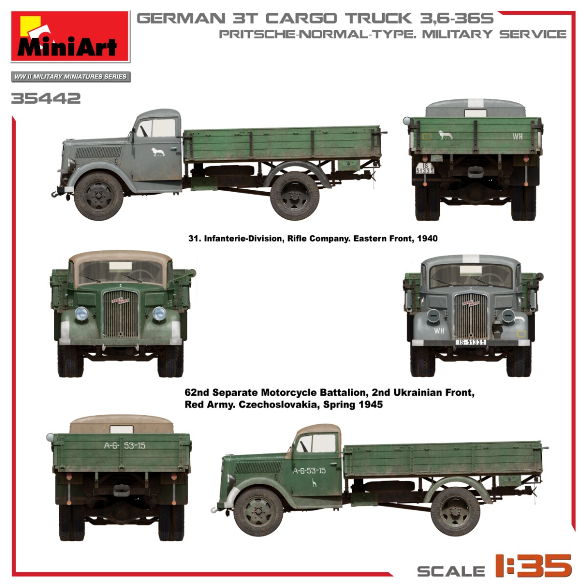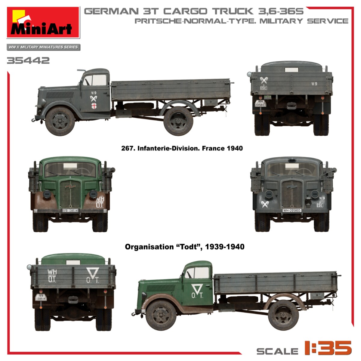 Сборная модель 1/35 Немецкий грузовой автомобиль 3.6-36S грузоподъемностью 3 тонны – бортовая платформа, стандартный тип, для военной службы MiniArt 35442 с доставкой по всей Украине и магазинам Киева и Одессы.